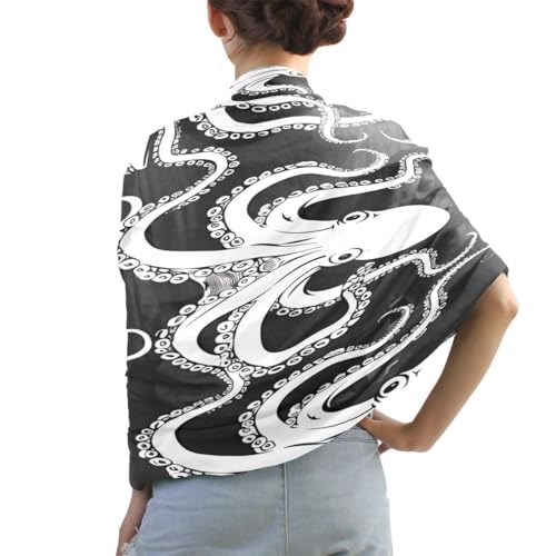 ALAZA White Kraken Black Chiffon Silk Long Scarf Shawl Wrap 1