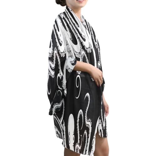 ALAZA White Kraken Black Chiffon Silk Long Scarf Shawl Wrap 7