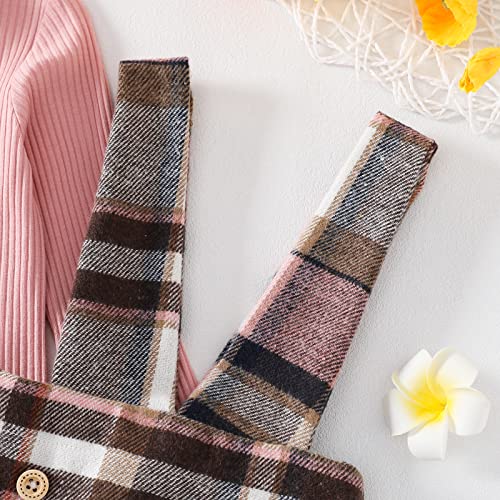 Madjtlqy Baby Girls Fall Winter Outfit Sets Ribbed Long Sleeve Pullover Tops + Plaid Suspender Skirt 12 18 24M 2T 3T 4T 5T 3