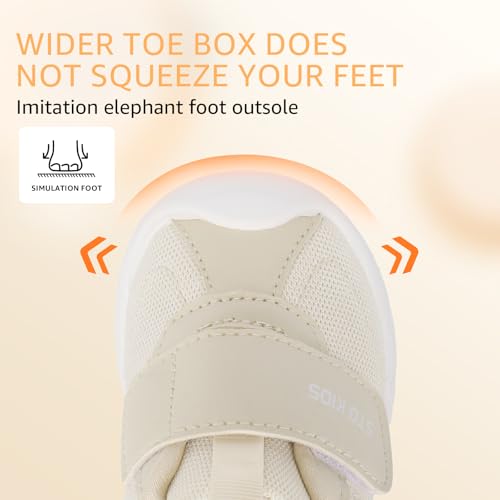 • [ Easy to Wear ]: Toddler walking shoes with adjustable hoop & loop, convenient for parents help infant boy and girl wear wide toe box shoes, also easy for children on & off by themselves. Great choice for busy parents give to children