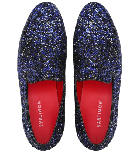 Santimon Mens Slip On Loafer Shoes Metallic Sequins Nightclub Glitter Loafers Luxury Wedding Prom Shoes 7