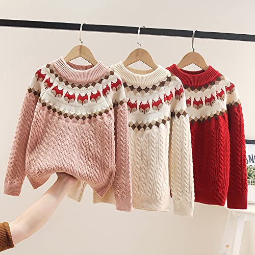 Kids Girls Vintage Cable Knit Sweater Toddler Cute Fox Pattern Thicken Warm Twist Knitted Crewneck Pullover Outerwear 5