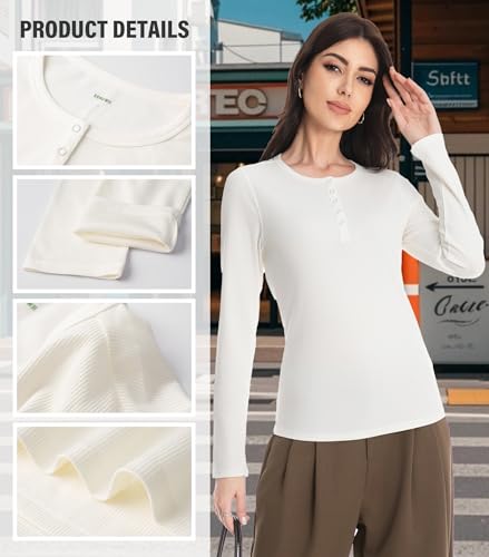 • Double-Lined Cloud-Like Comfort:Experience our signature double lined long sleeve tops for women softness - two-layer stretchy fabric feels like butter against skin, with a feather-light weight and subtle brushed finish for all-day comfort without bulk