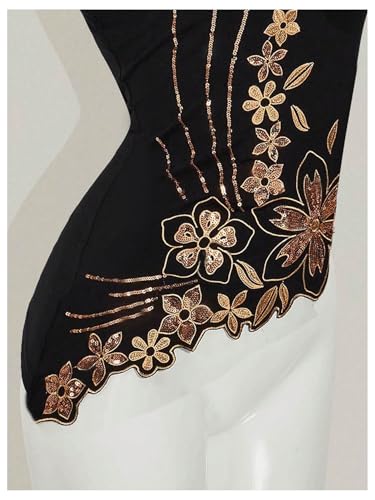 • Feature: Glitter Sequin, Floral Pattern, Strapless, Sleeveless, Asymmetrical Hem, Tube Tops for Women