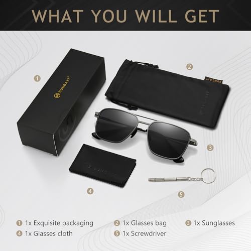 HOT ! SUNGAIT Mens Sunglasses Polarized Square Aviator, UV400 Protection, Metal Frame for Driving, Fishing, and Outdoor Activities