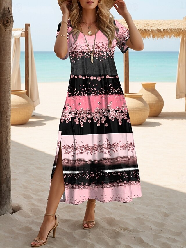 Women's Maxi Dress T Shirt Dress Tee Dress Sundress Shift Dress Vacation Casual Beach Party Beach Regular Fit Geometric Short Sleeve Crewneck Pink Blue Purple Green Summer Spring 6