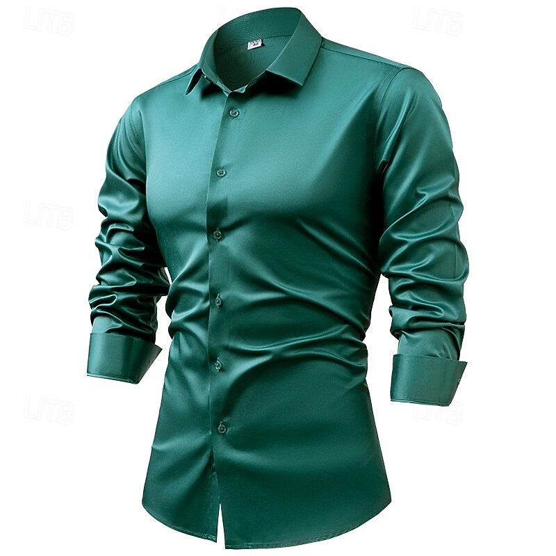 More information about Men's Shirt Satin Shirt Casual Shirt Button Up Shirt Plain Wedding Vacation Black Red Royal Blue Green Long Sleeve Collar Fall Spring & Summer Clothing Apparel