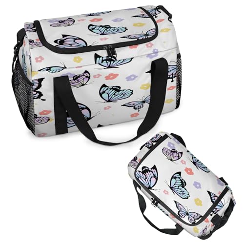 HOT ! Pastel Butterfly Travel Duffle Bag - Waterproof weekend luggage bag, men's sports and fitness bag, delivery hospital storage bag, overnight luggage bag with pull rod cover