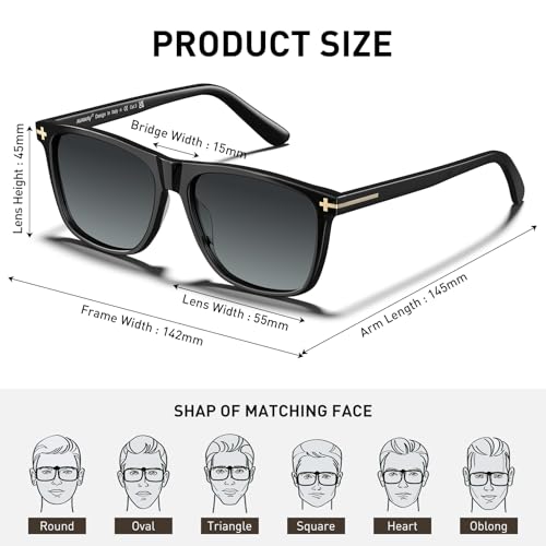 • 【Acetate Frame Rectangle Men's Sunglasses】Our sunnies are made of Italy handpolished acetate material. Compared with cheap peeling plastic frame whose color are sprayed on, our glossy frame retains color brightness impeccably over time because its hue is natively embedded in material.