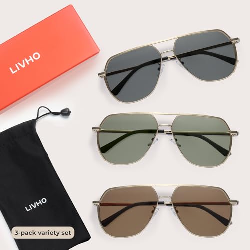 HOT ! Livho Polarized Aviator Sunglasses for Men, Trendy Square UV Protection Oversized Fashion Sun Glasses
