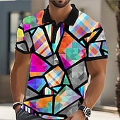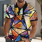 Men's Geometric Pattern Polo Short Sleeve Polo Shirts Collared Shirts Casual Athleisure Outdoor clothing Daily Wear 3D Print Buttons Summer Yellow Blue Green 9