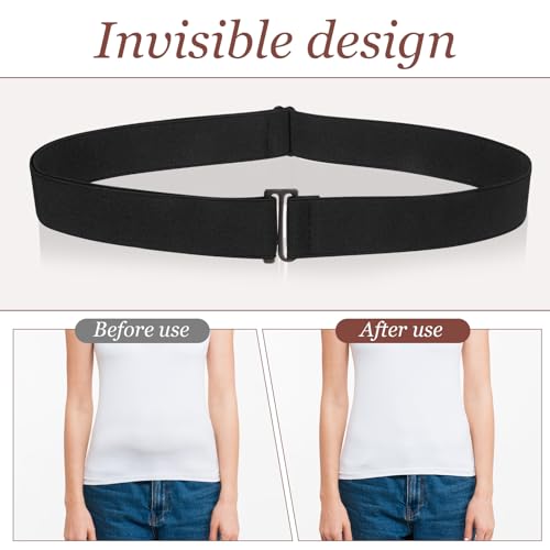 2PCS No Show Stretch Invisible Belt for Women Adjustable Elastic Belts Flat Buckle Waist Belts for Jeans Pants Dresses 4