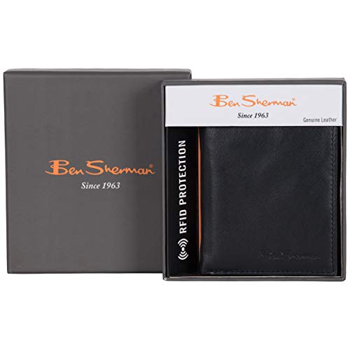 HOT ! Ben Sherman Men's Manchester Slim Bifold Full-Grain Leather RFID Minimalist Gift Box Wallet