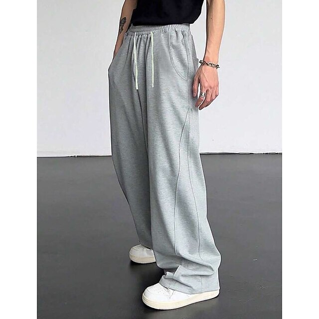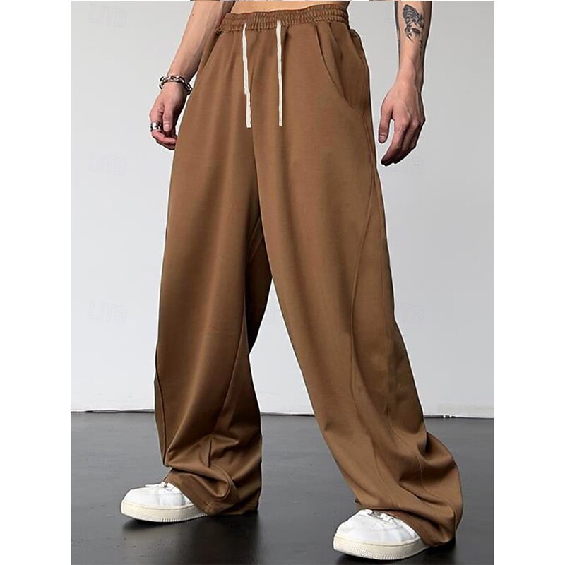 HOT ! Men's Athletic Pants Wide Leg Sweatpants Trousers Drawstring Elastic Waist Plain Comfort Breathable Casual Daily Holiday Sports Fashion Dark Brown Black