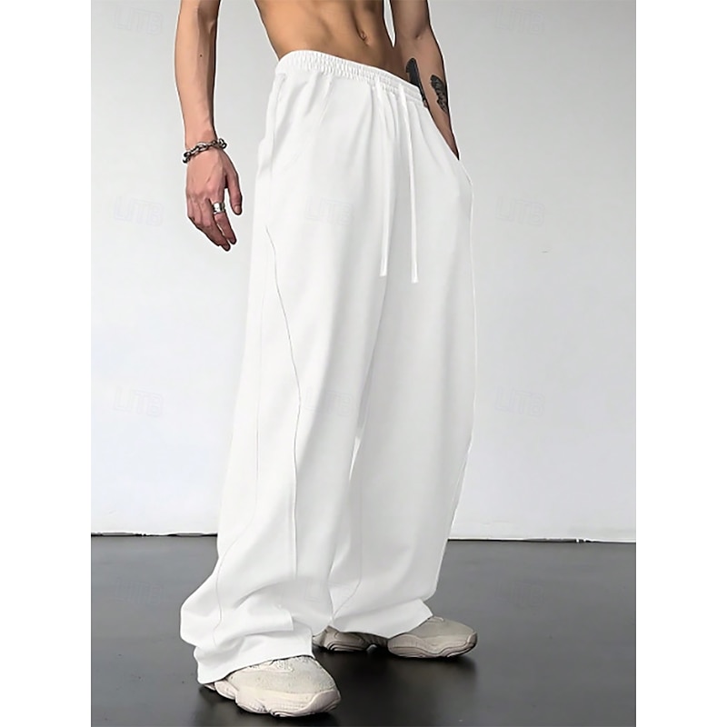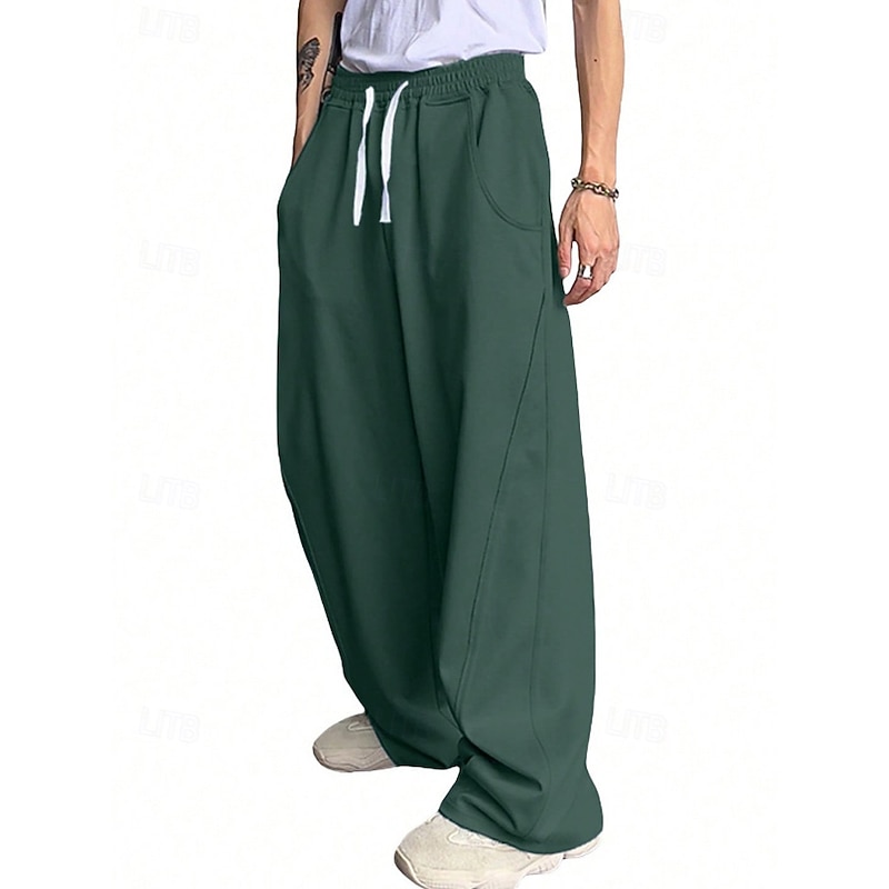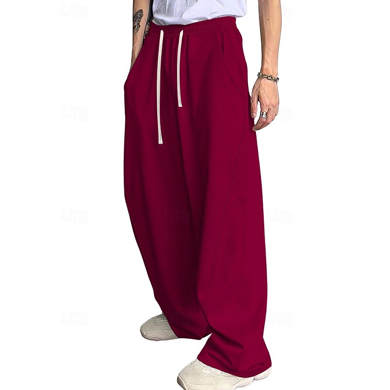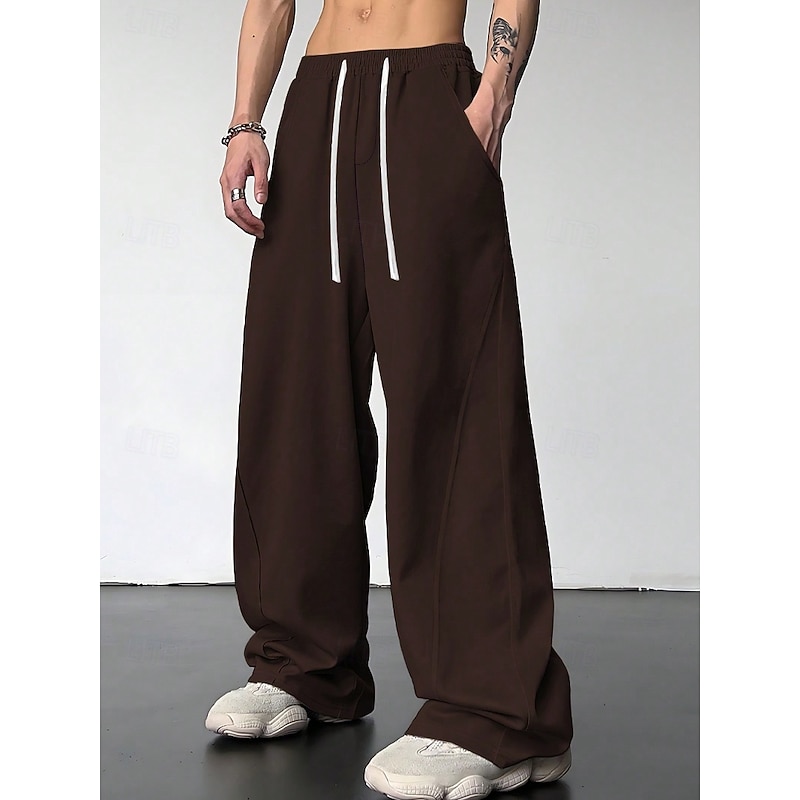 More information about Men's Athletic Pants Wide Leg Sweatpants Trousers Drawstring Elastic Waist Plain Comfort Breathable Casual Daily Holiday Sports Fashion Dark Brown Black