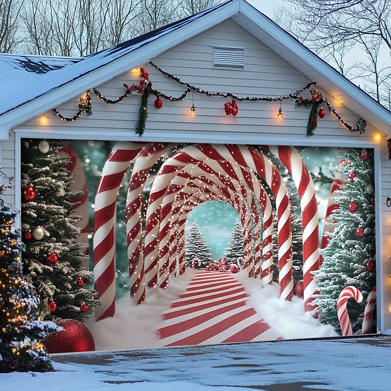 Christmas Door Decorations Outdoor Garage Door Cover Xmas Candy Canes Banner Farmhouse Large Christmas Backdrop for Holiday Outdoor Garage Door Home Wall Decorations 7