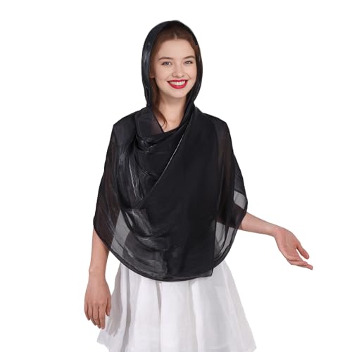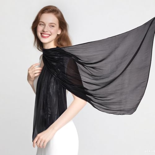 Fabric type: 100% PolyesterCare instructions: Hand Wash OnlyOrigin: ImportedPremium Material & Comfort: Crafted from lustrous Sea Island Silk Polyester, this scarf for women combines the graceful sheen of silk with the breezy comfort of chiffon. Its featherlight design makes it ideal as a summer shawl or beach scarf, while the soft, skin-friendly fibers ensure all-day comfort, ideal for sensitive skin. Enjoy effortless style as a summer scarf or modal hijabSize: We have silver shawls, black shawls and off-white shawls to choose from. Measuring 67 x 27.6 (170cm x 70cm), this long scarf provides comfortable coverage. The well-proportioned dimensions work beautifully as a stylish neck wrap, a hijab scarf for women, a lightweight shawl for women, or a graceful shoulder cover for dressMulti-Way Styling: This shawl for women complements countless outfits. Easily pair it with dresses, gowns, blouses, wedding dress, bridesmaid dress, swimwear, or formal attire like your formal dress or evening dresses. It's a versatile scarf for women that transitions seamlessly from shawls and wraps for evening dresses to casual daytime looks, travel wearShimmering Style and Elegant Occasions: The beautifully glistening surface of this scarf for women adds instant glamour. Designed as the ideal shawl for formal dress or dressy accessory, it helps you stand out at evening events, weddings, parties, beach, seaside, balls, ceremoniesor any gathering. It's an essential sheer shawl for evening dresses or dress cover up formalHeartfelt Gift: This elegant scarf for women makes a stunning present for birthdays, Halloween, Thanksgiving, Christmas, Mother's Day, Valentine's Day, anniversaries, New Year, back-to-school. Ideal for moms, wives, girlfriends, teachers, or friends, this warm gift will bring good memories and joy to your lover Perfect for everyday use. first-class materials and excellent craftsmanship ensure long-lasting durability.