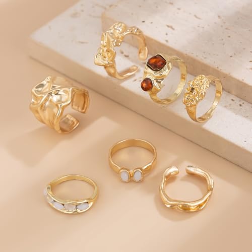 BUYITO Chunky Gold Statement Rings for Women Dainty Gemstone Crystal Ring Stackable Opening Adjustable Knuckle Bold Thick Irregular Ring Set Vintage Jewelry 6