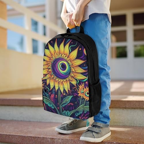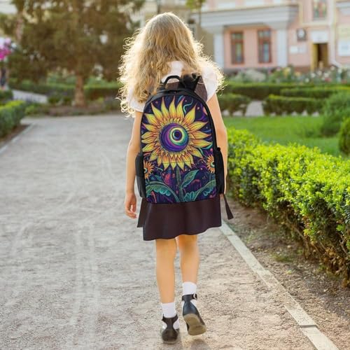 Men Women Polyester Trippy Eyes Flower Sunflower Daypack Bookbag Big Capacity Shoulder Bag With Padded Straps for Climbing Travel Walking Cycling 4