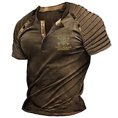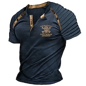 More information about Men's Halloween Skull Graphic Prints Pirate Henley Shirt Raglan T Shirt Short Sleeve Fashion Designer Casual Outdoor Vacation Daily Summer Navy Blue Brown Green Henley Henley T-Shirt