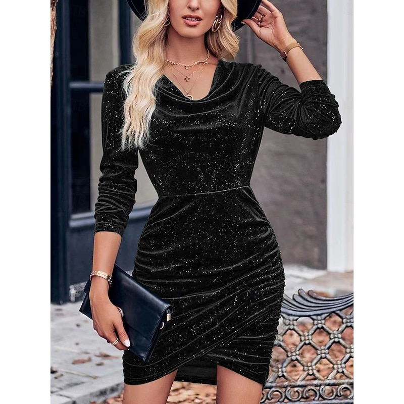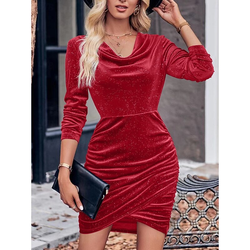 More information about Women's Mini Dress Sheath Dress Elegant Party Cocktail Outdoor Party Wedding Guest Regular Fit Solid Color Long Sleeve Cowl Neck Black Wine Red Green Fall Winter