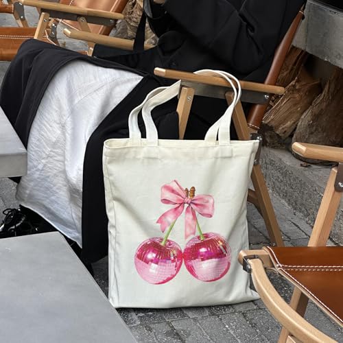 Pink Disco Cherry Canvas Tote Bag for Woman Lady, 14x16 Inch Perfect for Friends BFF Sister Birthday Gift 1