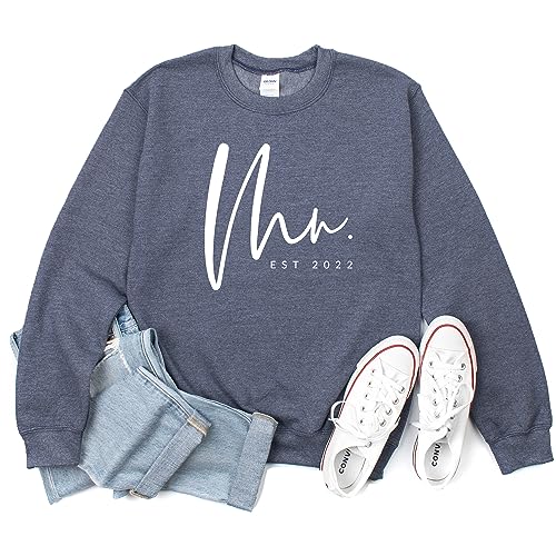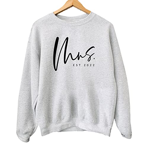• 【Design】 Cute and Funny Mr and Mrs Letter Print Graphic with Est year personalization, Bride Sweatshirt, honeymoon sweatshirt, bridal party gift