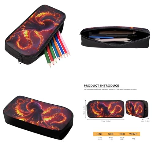 HOT ! Cool Animal Print Backpack with Lunch Box Pencil Case Magical Lightning Octopus Backpack for Boys Girls Large Capacity Lightweight Red 17 Inch School Bag Set for Kids