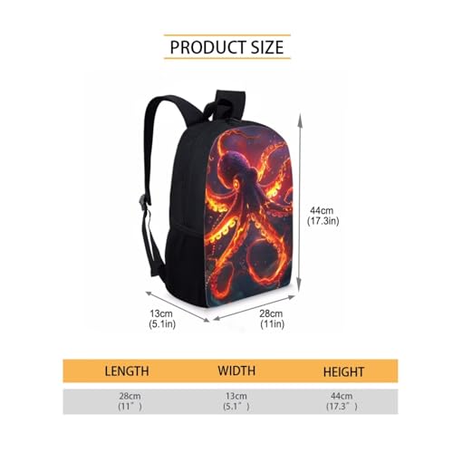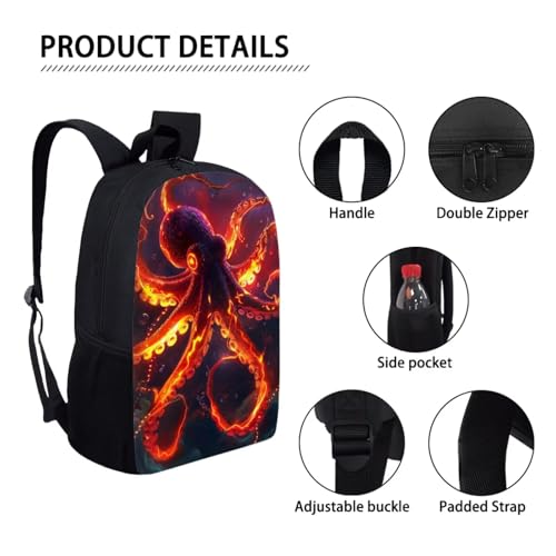 More information about Cool Animal Print Backpack with Lunch Box Pencil Case Magical Lightning Octopus Backpack for Boys Girls Large Capacity Lightweight Red 17 Inch School Bag Set for Kids