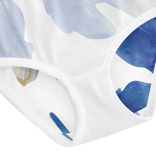 Watercolor Blue Fig Leaves White Little Girl Panties Toddler Underwear Custom Cotton Personalized Briefs Kids Undies 2t 5