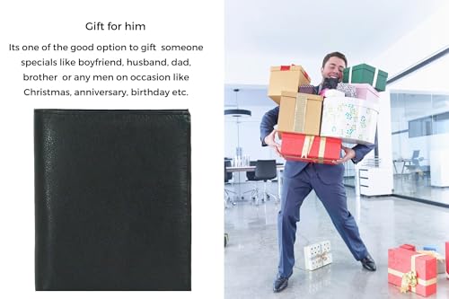 Leather European Bifold Hipster Mens Wallet With Heavy Duty Vinyl Wallet Insert (Black) 4