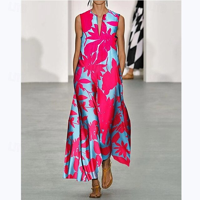 Women's Maxi Dress A Line Dress Summer Dress Vacation Casual Boho Daily Holiday Loose Fit Floral Graphic Sleeveless V Neck Pink Blue Orange Summer 11