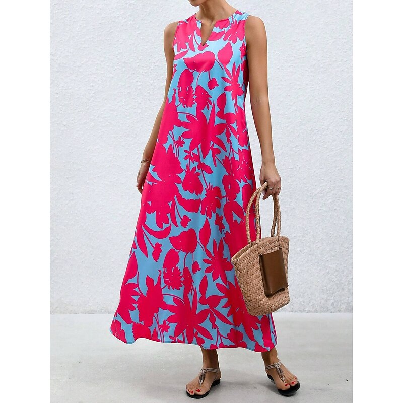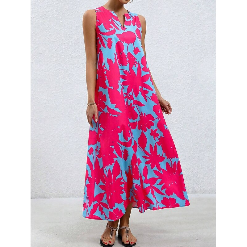 Women's Maxi Dress A Line Dress Summer Dress Vacation Casual Boho Daily Holiday Loose Fit Floral Graphic Sleeveless V Neck Pink Blue Orange Summer 1