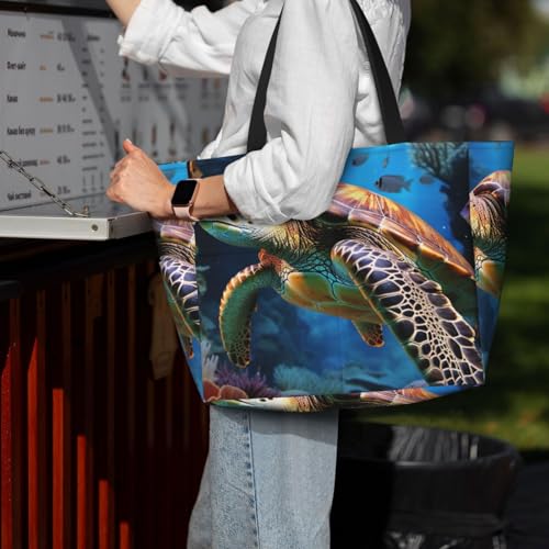 HOT ! Beach Bags For Women Large Waterproof Sandproof Beach Tote Bag Lightweight Zipper Carry On Bag Ocean Animal Turtle Pool Bag For Gym Travel Vocation