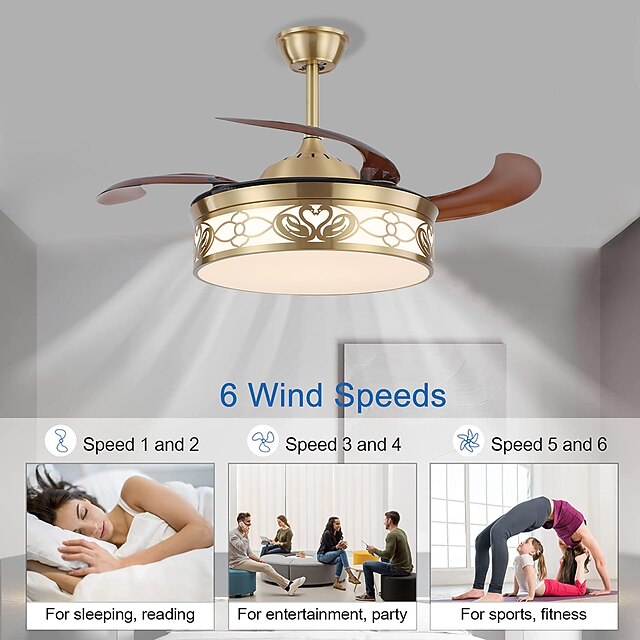 Ceiling Fan with Light Circle Design App & Remote Control Crystal 50cm Dimmable 6 Wind Speeds Modern Ceiling Fan for Bedroom, Living Room, Small Room 110-240V 4