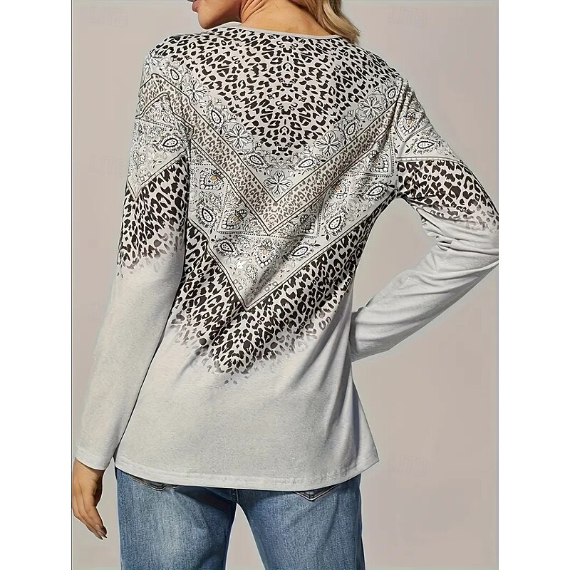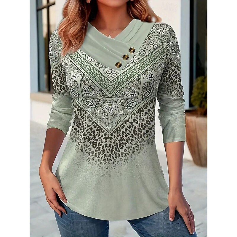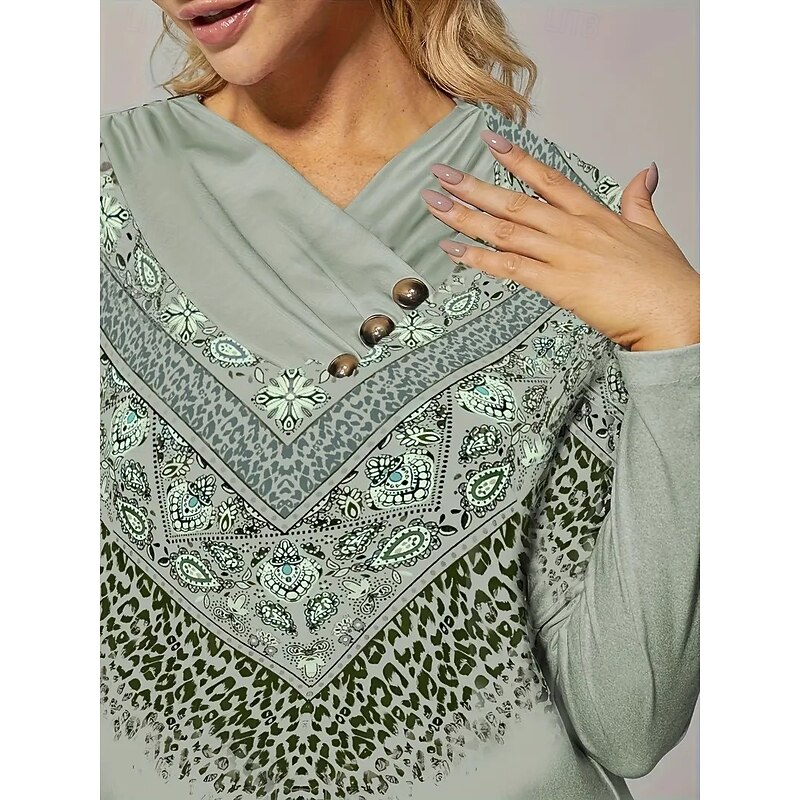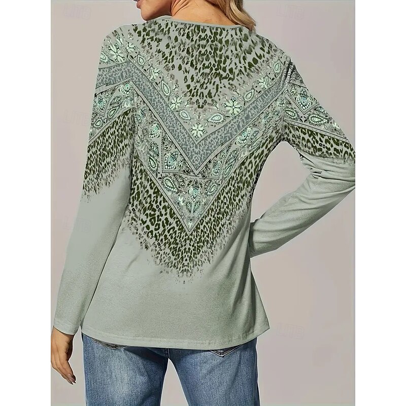 HOT ! Women's T Shirt Graphic Striped Vintage Stylish Casual Long Sleeve V Neck Regular Tops Daily Weekend Buttons Print Light Green Blue Green Gray Fall Winter