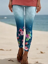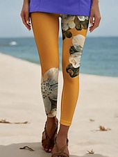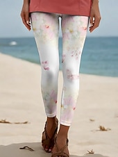 More information about Women's Pants Trousers Leggings Cozy Leggings Streetwear Casual Full Length High Waist Floral Elastic Waist Print Breathability Comfortable Stretchy Vacation Street Daily Wear White Yellow Blue
