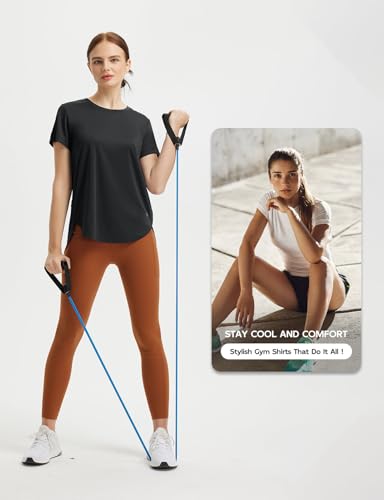 • Moisture-Wick & Lightweight: Workout shirts for women are made of 100% polyester, the breathable and UPF 50+ fabric that can quickly wick moisture away from your skin, allowing for quick drying, keeps you cool, and offers sun protection during workouts.