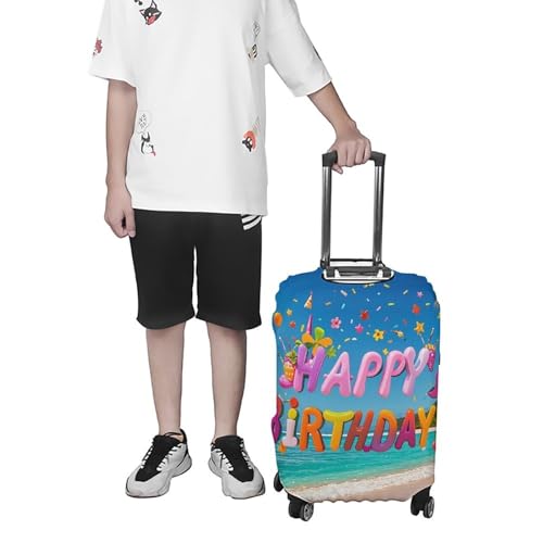 Happy Birthday on The Beach Elastic Luggage Cover Suitcase Protector for 19-32 Inch Suitcases | Universal Stretchable Travel Bag Cover | Anti-Scratch, Washable with Zipper Closure XL 5