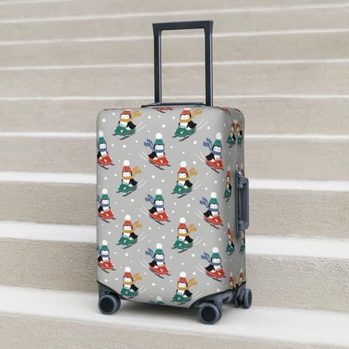 HOT ! Skiing Penguin Print Luggage Cover For Suitcase,Washable Elastic Travel Suitcase Protector With Zipper Closure And Bottom Buckle – Fits 18-32" Luggage-X-Large