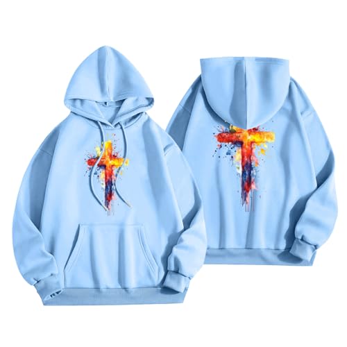 HOT ! Christian Hoodies for Men | Christian Hoodie Colorful Cross Printed | Loose Fit Pullover Casual Fall Winter Tops