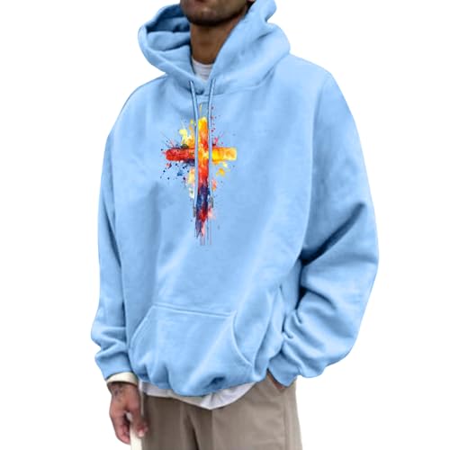 Christian Hoodies for Men | Christian Hoodie Colorful Cross Printed | Loose Fit Pullover Casual Fall Winter Tops 1