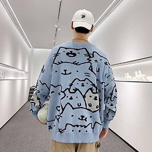 HOT ! Men's Oversized Cat Sweaters Crewneck Long Sleeve Cotton Cute Pullover Sweaters