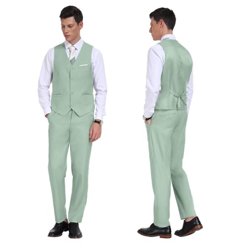 Fxzpiodi Mens 2 Piece Suit Vest Pant Set Slim Fit Casual Solid Waistcoat Vests Pants with Pocket Wedding Prom Suit for Men 3