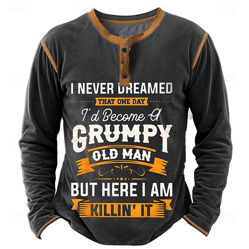 More information about Men's Graphic Letter Henley Shirt Long Sleeve 3D Print Fashion Daily Casual Casual Holiday Going out Spring & Fall Black Brown Army Green Dark Blue Henley Henley T-Shirt