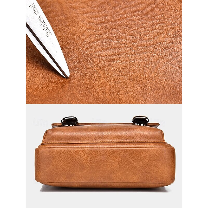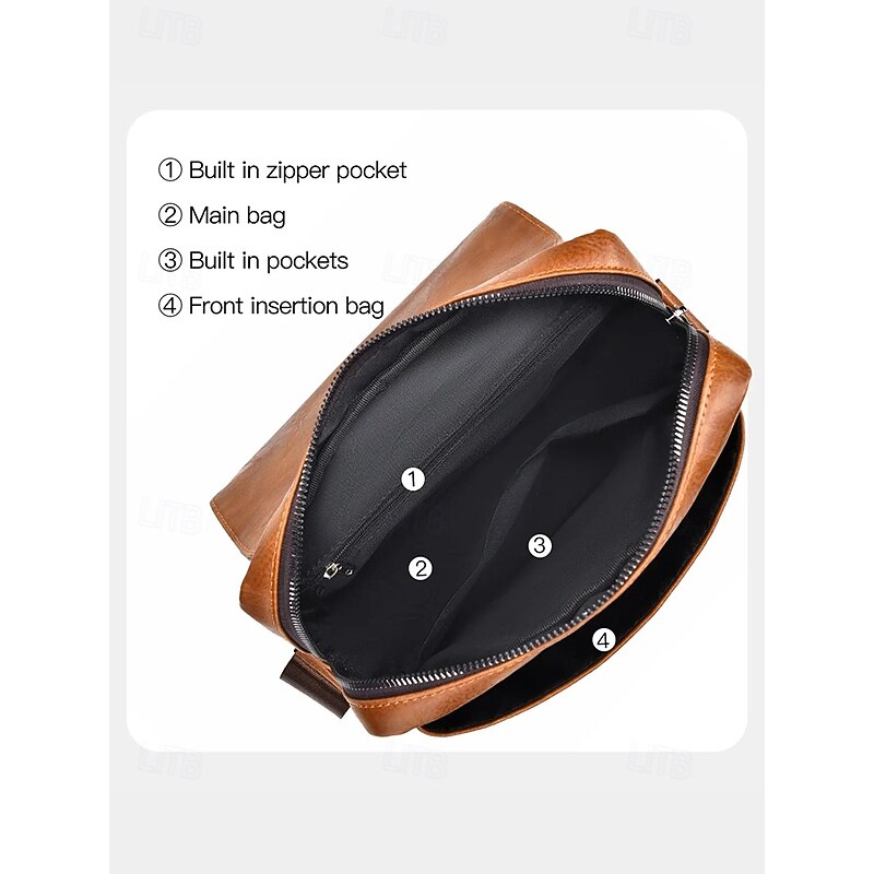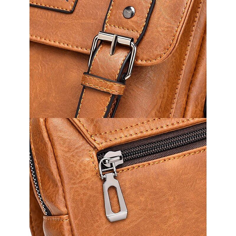 More information about Men's Shoulder Bag Messenger Bag Crossbody Bag Shoulder Bags PU Leather Office Casual Casual Daily Zipper Multiple pockets Large Capacity Waterproof Durable Solid Color Color rubbing Black Brown