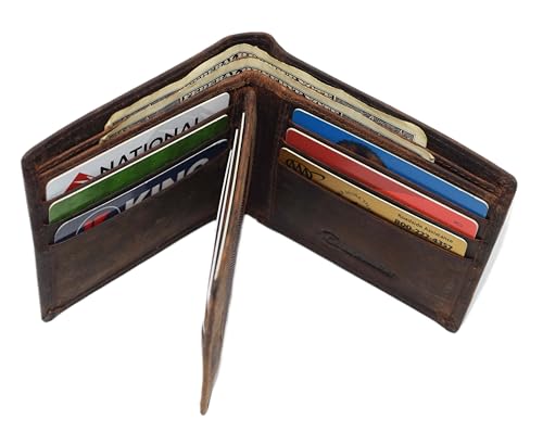 Distressed Vintage Leather Patriot American Flag Wallet -GOD BLESS AMERICA’ RFID Blocking Leather US Flag Men's Bifold Western Style Wallet (Brown) 6