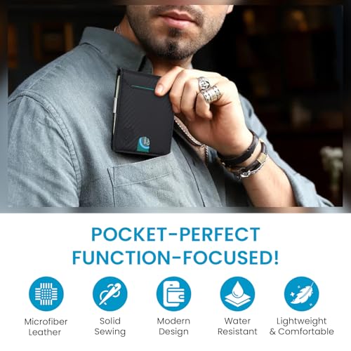 • Sleek & Stylish Design: Crafted from premium men's leather wallet with a carbon fiber texture, this minimalist bifold wallet fits comfortably in pockets, perfect for everyday use, business, travel, and special occasions. This slim leather wallet for men is durable, stylish, and functional, making it an ideal men's wallet gift idea with multiple compartments and card slots.