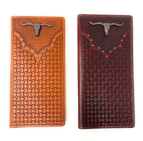 Western Genuine Leather Basketweave Longhorn Men's Long Bifold Wallet in 2 colors (Coffee) 1