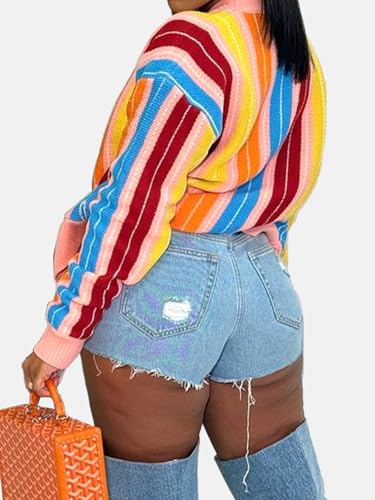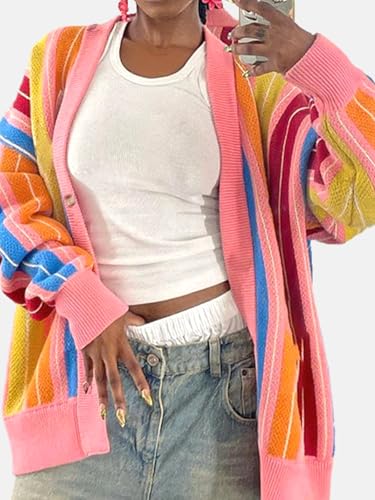 • Women's Rainbow Knitted Cardigan with Soft Acrylic: Crafted from premium acrylic yarn, this womens striped cardigan sweaters delivers warmth and comfort while maintaining breathability, making it an ideal oversized cardigan sweater for layering in cooler weather